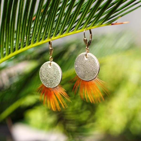 - Plume de faisan doré, issue d’une collecte éthique et faite en France.