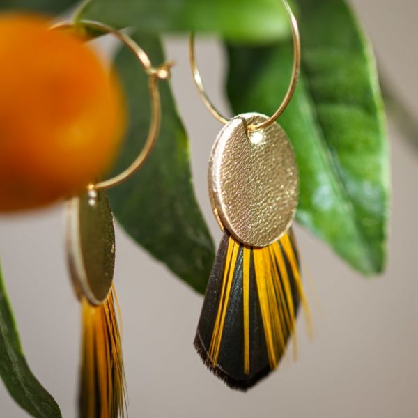 Ces boucles d’oreilles sont réalisées à la main dans mon atelier du Sud de la France. Elles s’accorderont aussi bien avec une tenue de tous les jours, qu’une robe habillée. Elles apporteront un vrai atout à votre style ! L’écrin dans lequel elles sont livrées est fabriqué exclusivement en tissu recyclé par une créatrice partenaire de mon village.